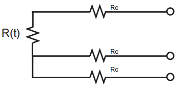 Esta es la configuracion mas usada ya que se introduce el mismo error en ambos extremos de la RTD y en el terminal de compensación, esta medición se ingresa a un puente de Wheatstone buscando el equilibrio electrico, con esto se logra eliminar el error aportado por el cable, el requisito para esta conexión es que la resistencia de los 3 cables debe ser igual.